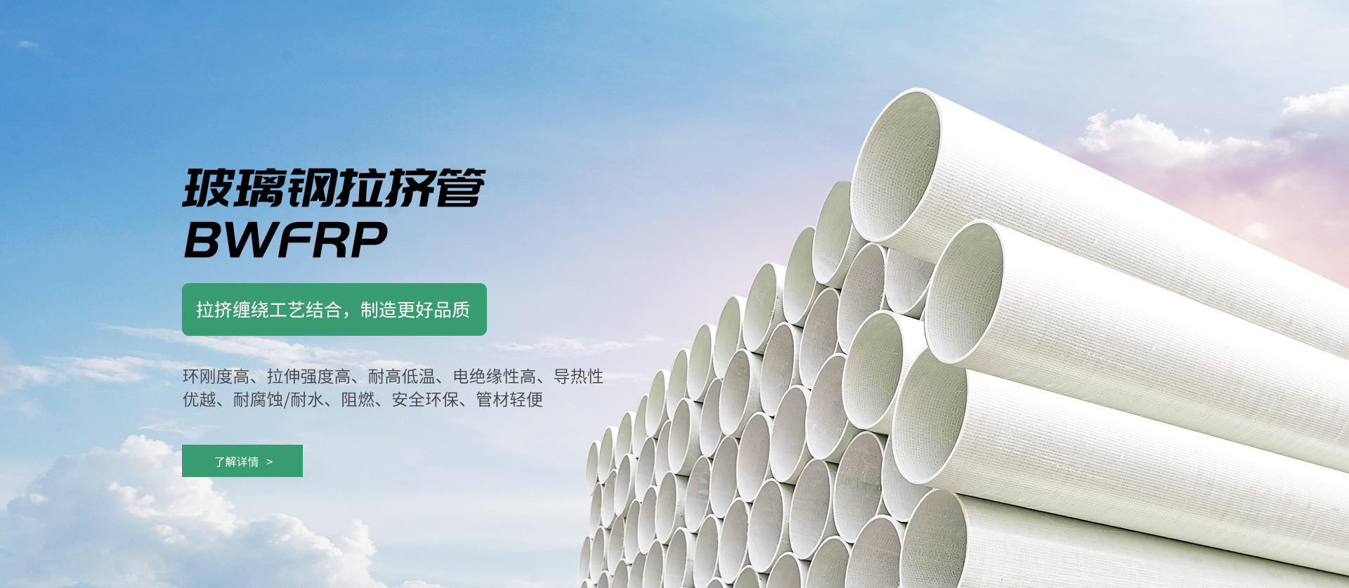 纖維編繞拉擠電纜保護(hù)管(BWFRP),是一種新型電纜導(dǎo)管材料。采用高性能纖維復(fù)合材料和環(huán)氧樹(shù)脂為原材料,由內(nèi)編繞層、中間層、外編繞層構(gòu)成,通過(guò)拉擠工藝成型。這種新型的電纜導(dǎo)管產(chǎn)品具有傳統(tǒng)管材無(wú)法比擬的優(yōu)點(diǎn),是取代傳統(tǒng)玻璃鋼管的一種結(jié)構(gòu)與性能俱佳的產(chǎn)品,適用于電力電纜及通信電纜的保護(hù)套管使用。