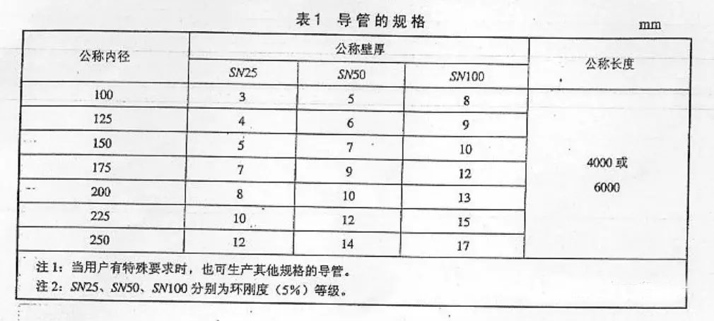 --規(guī)格用“公稱內徑x公稱壁厚x公稱長度 產品等級”表示;產品等級用環(huán)剛度(5%)等級SN25、SN50、SN100表示;