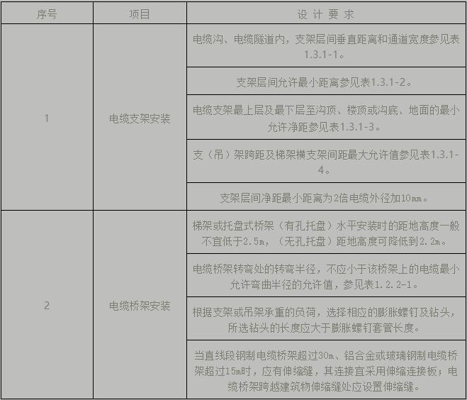 表1.2.3 電纜支架/橋架安裝設(shè)計(jì)要求控制點(diǎn)