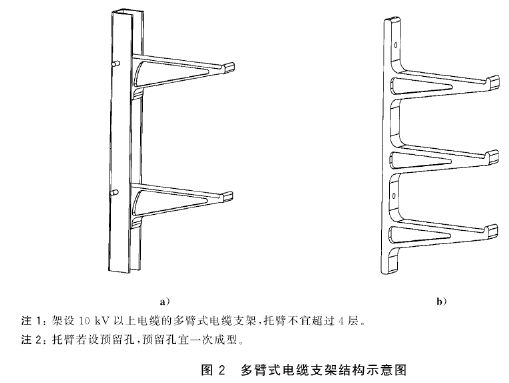 2.2 電纜支架按單個(gè)托臂所能承受的垂直荷載,分為l級、2級、3級、4級、5級.