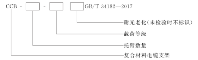 示例:托臂數(shù)最為多臂式、載荷等級為3級、耐光老化型.的電纜支架標(biāo)記為:CCB-M-3LGB/T34182-2017.