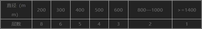 管道存放時(shí)采用臥式堆放,并固定牢靠。存放層數(shù)見下表。