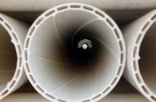 將PVC管制成內(nèi)壁附有螺旋狀翼片的消聲排水管,此時它的外壁仍是PVC硬塑料管(保證排水管所需 強(qiáng)度),但內(nèi)壁附著一條一定寬度的柔韌性強(qiáng)的軟質(zhì)塑料螺旋帶,它使水流沖擊壓力部分卸栽到螺旋帶上,從 而對管壁起到了緩沖作用。